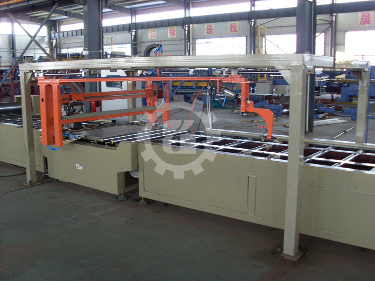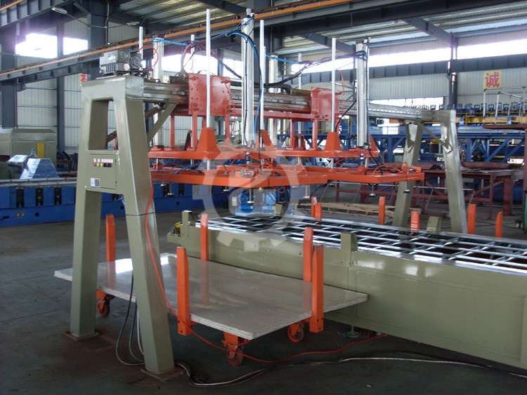 將成型后的板材自動(dòng)裝到成型架上,減少了用工量,降低了人為對(duì)板材及托板的損壞同時(shí)提高了自動(dòng)化